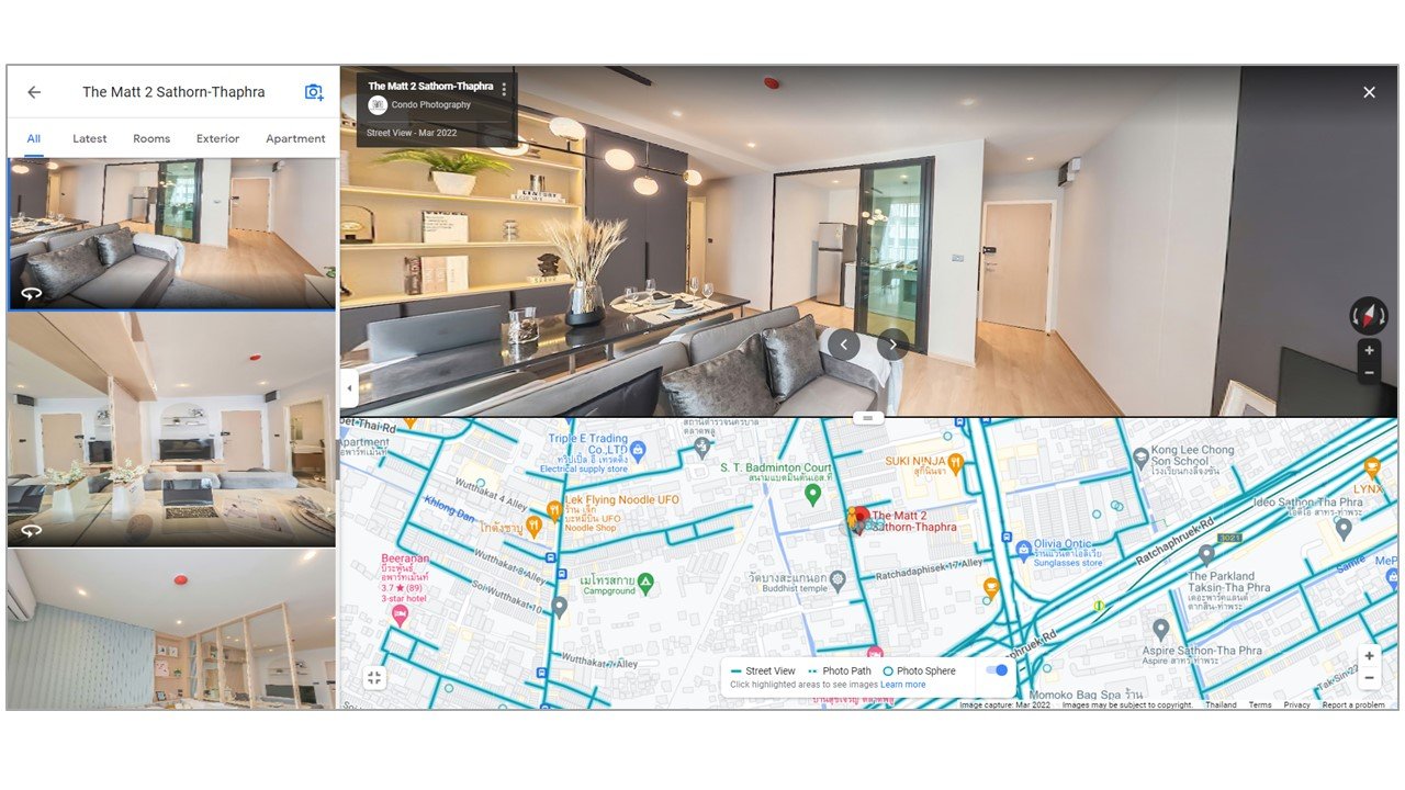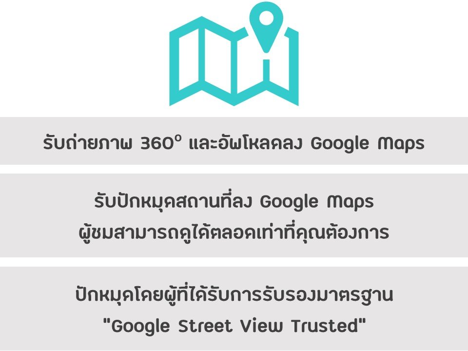 รับถ่ายภาพ 360 องศา / 360° Virtual Tour / VR Tour / Google Street View / ทัวร์เสมือนจริง เพื่อใช้ลง Google Maps และ Website สำหรับบ้าน คอนโด โรงแรม รีสอร์ท ออฟฟิสให้เช่า และอสังหาริมทรัพย์อื่นๆ ทุกประเภท ด้วยกล้อง DSLR คุณภาพสูงพร้อมปักหมุดใน Google Maps โดยช่างภาพมืออาชีพที่ได้รับการรับรองมาตรฐาน “Google Street View Trusted“
