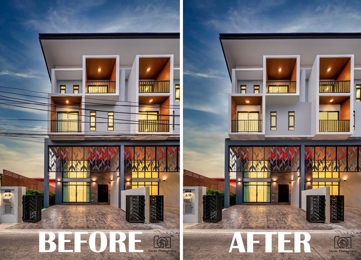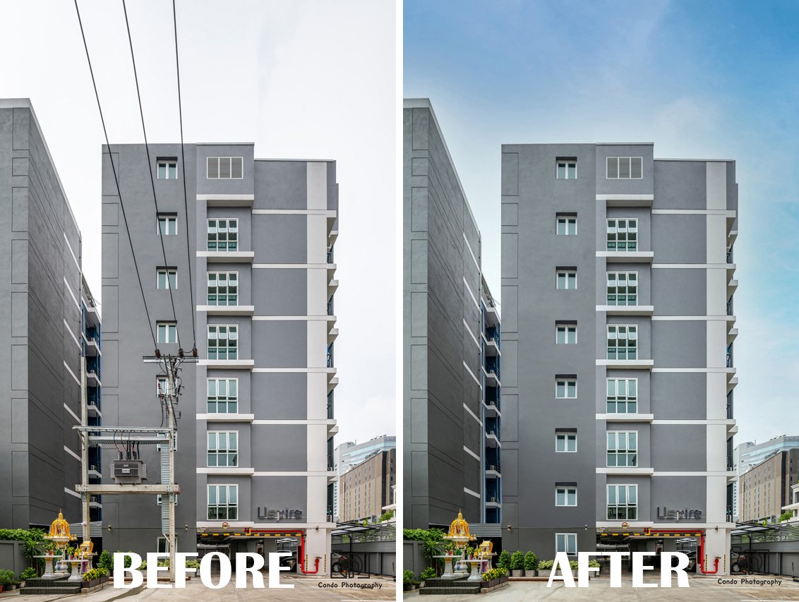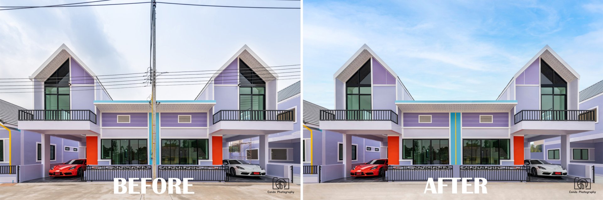 บริการรีทัชขั้นสูง สำหรับภาพอสังหาฯ โดยการแต่งรูปภาพให้โดดเด่นขึ้นมา สำหรับทำภาพ Hero Shot เพื่อการโฆษณา เช่น รีทัชลบสิ่งที่ไม่ต้องการในภาพออก ไม่ว่าจะเป็นเสาไฟฟ้า สายไฟฟ้า ทำพื้นผิวให้เรียบเนียน เปลี่ยนท้องฟ้า หรือเปลี่ยนบรรยากาศของภาพ (ราคาค่าบริการจะขึ้นอยู่กับความยาก-ง่ายของแต่ละภาพ)