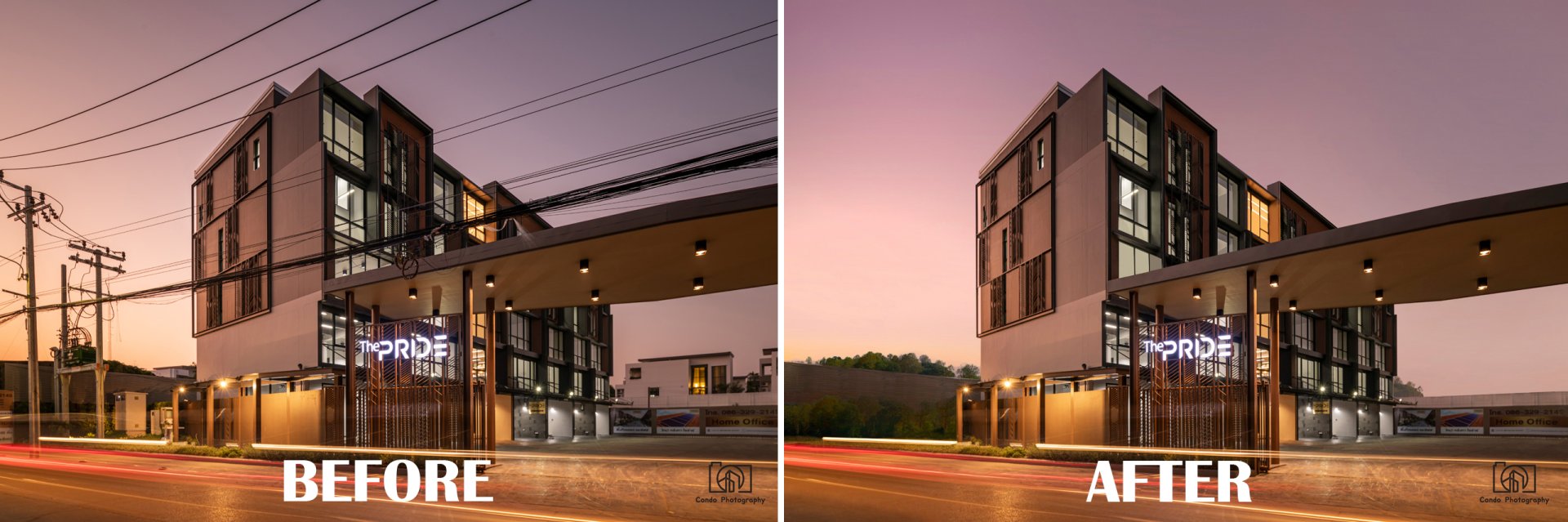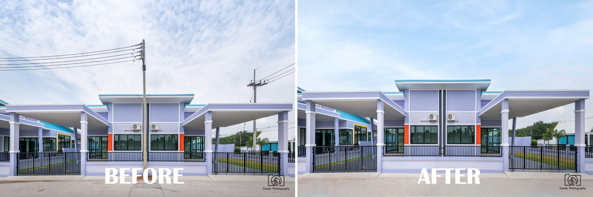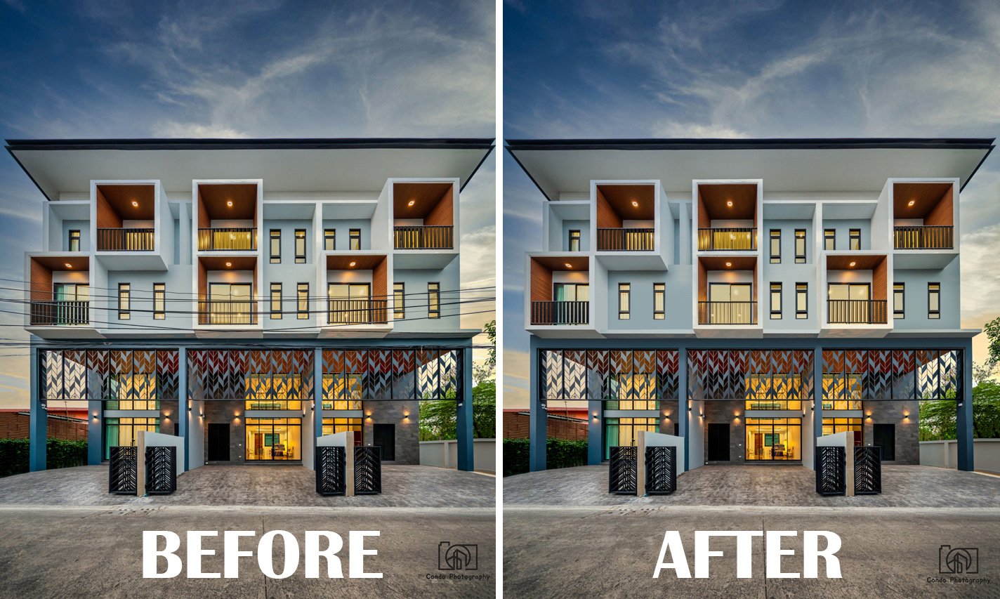 บริการรีทัชขั้นสูง สำหรับภาพอสังหาฯ โดยการแต่งรูปภาพให้โดดเด่นขึ้นมา สำหรับทำภาพ Hero Shot เพื่อการโฆษณา เช่น รีทัชลบสิ่งที่ไม่ต้องการในภาพออก ไม่ว่าจะเป็นเสาไฟฟ้า สายไฟฟ้า ทำพื้นผิวให้เรียบเนียน เปลี่ยนท้องฟ้า หรือเปลี่ยนบรรยากาศของภาพ (ราคาค่าบริการจะขึ้นอยู่กับความยาก-ง่ายของแต่ละภาพ)